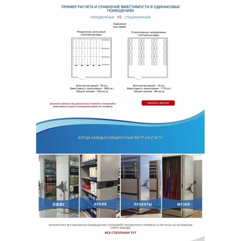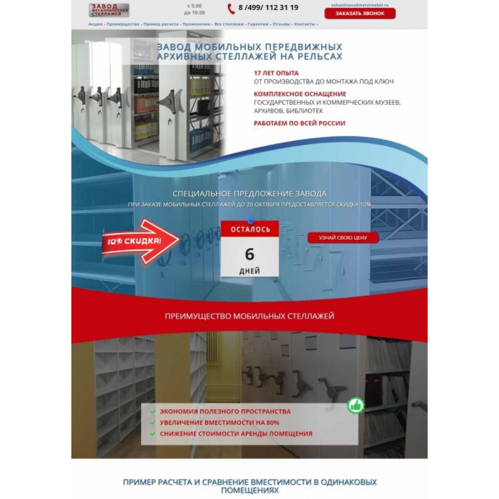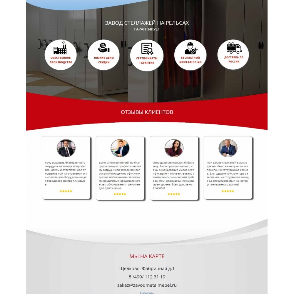 Рекламная страница (лендинг) завода мобильных стеллажей от веб-студии Максвебсайт г. Артёмовский