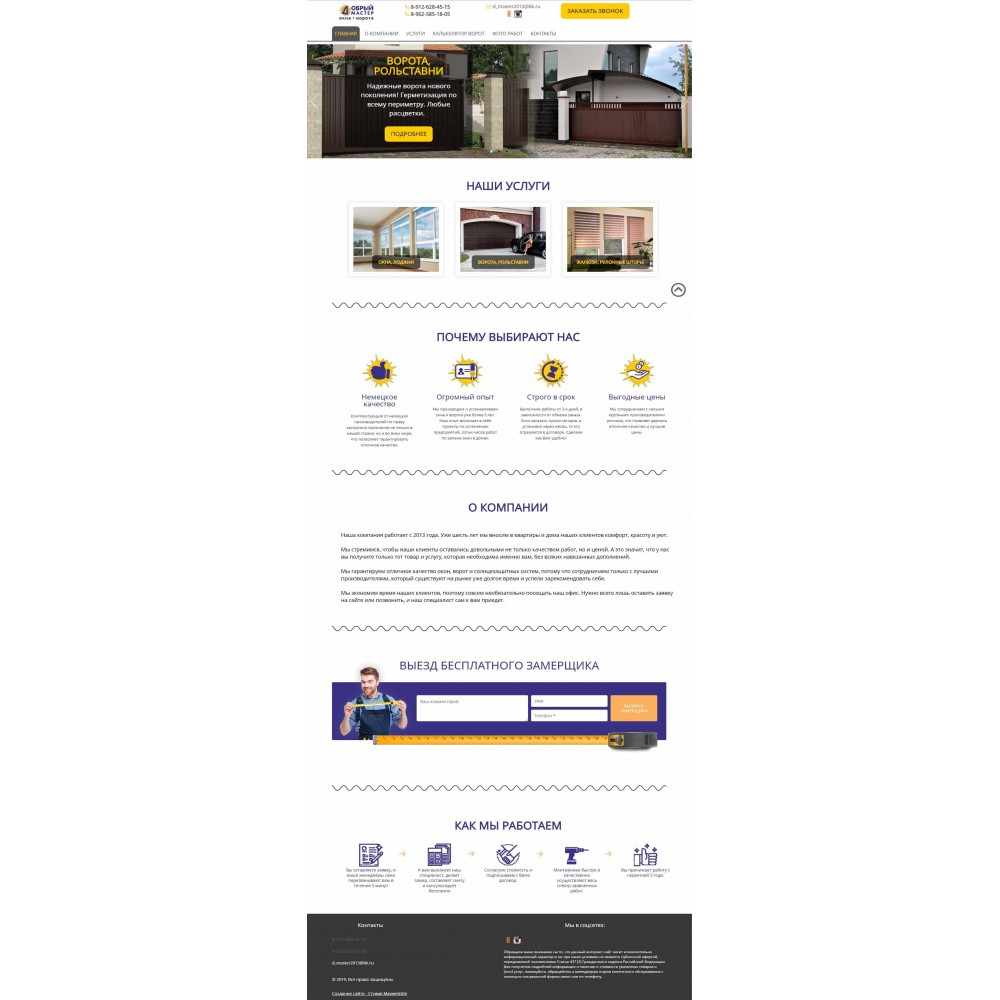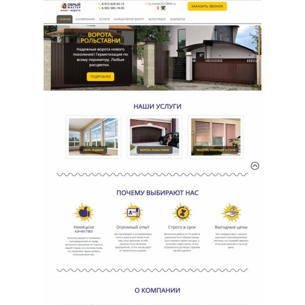 Сайт каталог услуг компании по установке окон и ворот г.Ревда от веб-студии Максвебсайт г. Артёмовский