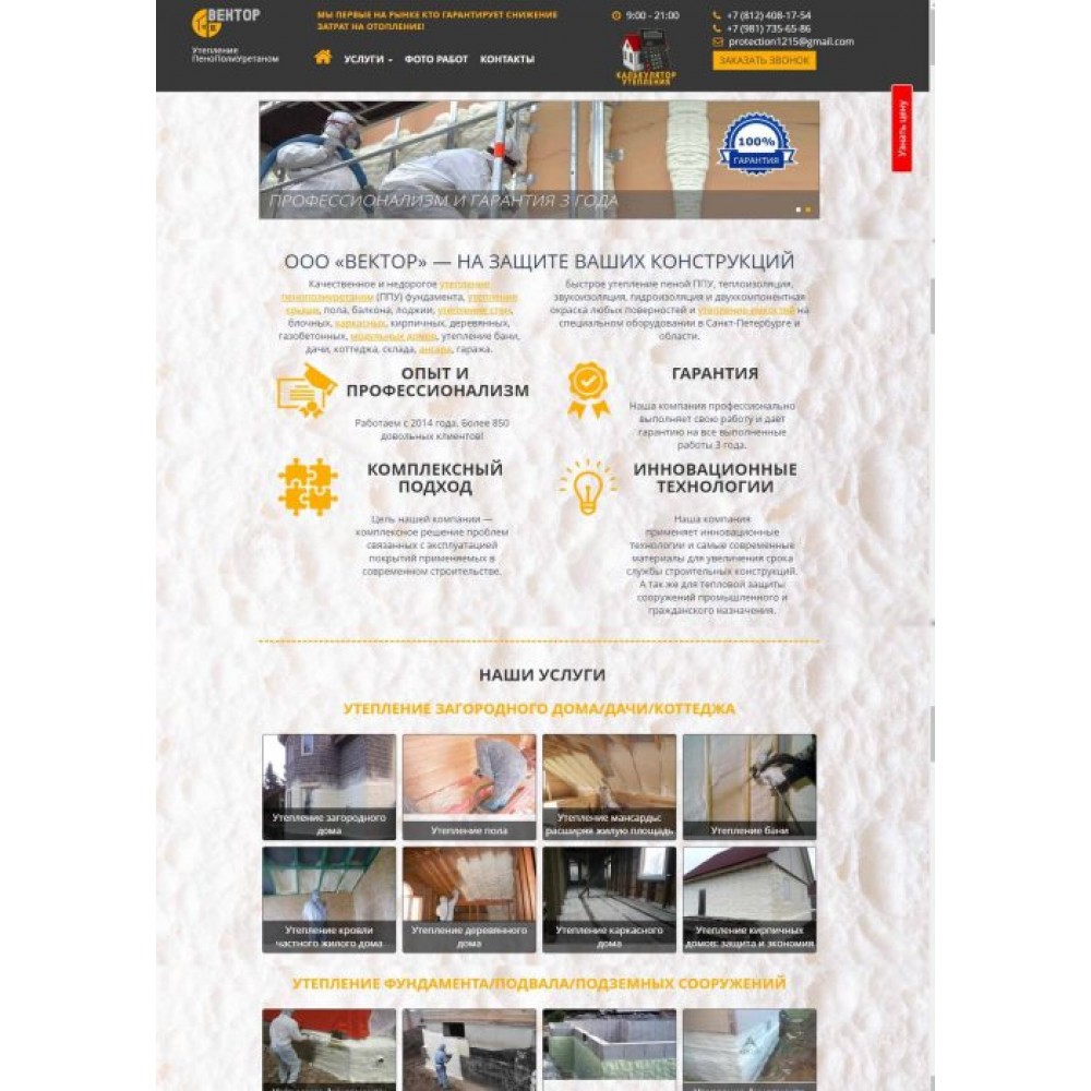 Сайт-каталог услуг по утеплению ппу в Санкт-Петербурге от веб-студии Максвебсайт г. Артёмовский