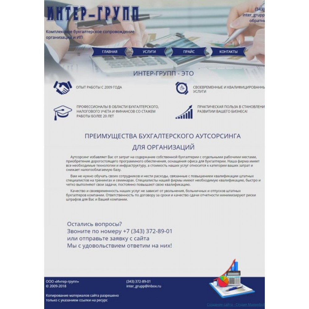 Сайт-визитка бухгалтерской компании г.Екатеринбург от веб-студии Максвебсайт г. Артёмовский